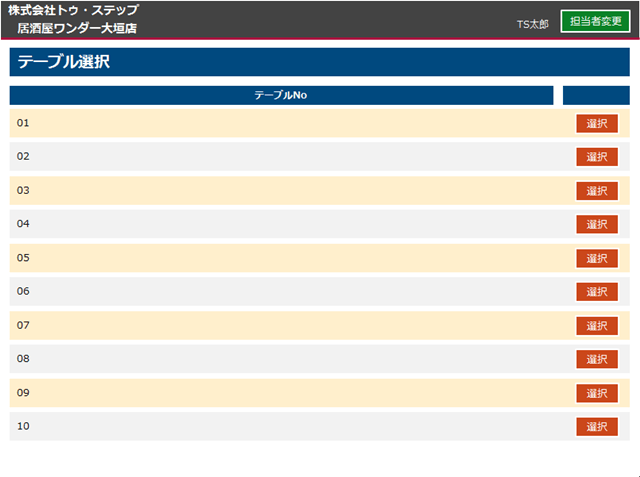 使用テーブル選択